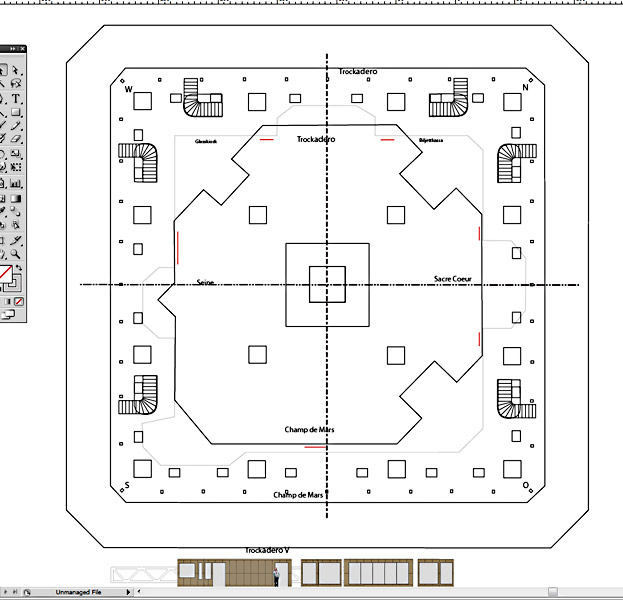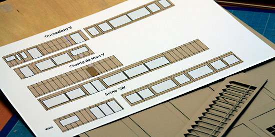 Mellanväggar tecknas i dator med vektorfiler, färglägges och skrives ut på kraftigt matt fotopapper. Underlag till fönster och dörrar är tagna från egna foton och filmer på plats.