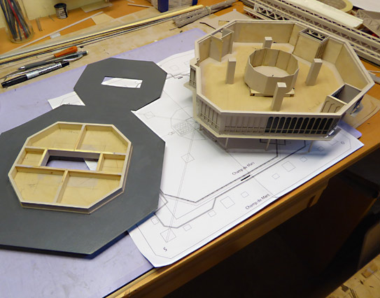 Mellanväggar till utsiktspattformen har kommit på plats tillsammans med stödben och pelare.