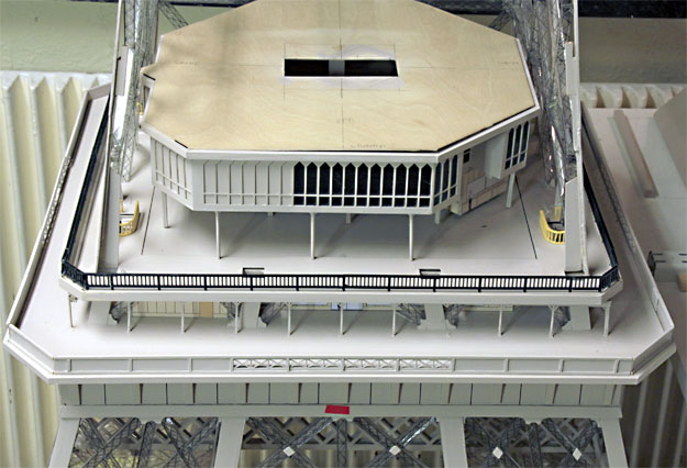 6 Vinklade trappor från 3 håll leder upp till utsiktsplattformen och Restaurangen