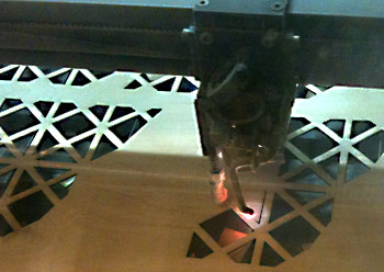 Skärningen av plywooden sker med mycket hög precision (tolerans +- 1 hundradels mm) från de vectorbaserade ritningarna