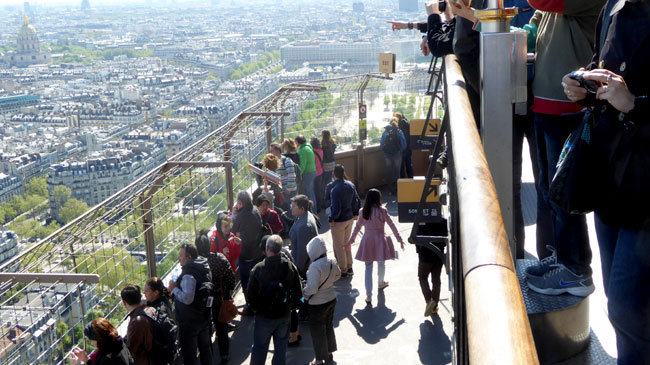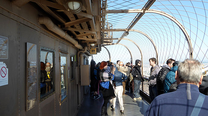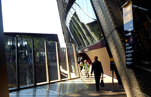 Restaurangen Jules Verne ligger på det övre planet. En gourmet-Restaurang med egen hiss och med Michelin status.